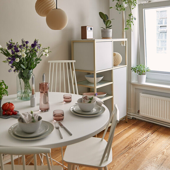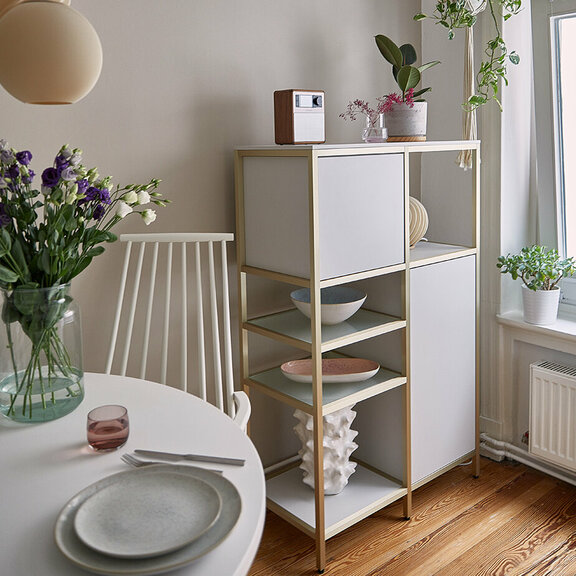 Les possibilités d'aménagement de Creo sont presque infinies. C'est pourquoi nous aimerions vous donner des exemples concrets de la manière dont vous pouvez utiliser le système d'étagères Creo dans de nombreux espaces de vie différents :