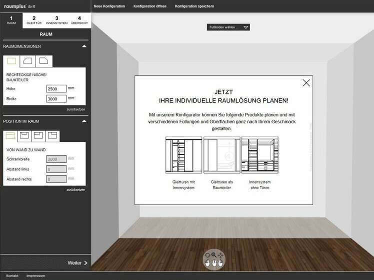 Pour ceux qui souhaitent s'amuser un peu, le configurateur d'armoires raumplus do it ! est fait pour vous. Cet outil gratuit permet de tester différentes solutions d'aménagement et d'envisager les premières variantes. Des pièces avec et sans pentes de toit sont proposées comme modèles. En outre, l'armoire peut être placée à différents endroits dans la pièce. Grâce à différents revêtements de sol et à la saisie des dimensions personnelles de la pièce, il est possible de créer une situation proche de celle de son propre domicile. La planification proprement dite du dressing commence par le choix des différents éléments de l'armoire. Avec ou sans porte coulissante, avec des traverses, avec ou sans rail au sol et complétés par des remplissages individuels, l'individualité n'a pas de limites. Il en va de même pour le système intérieur, qui peut être aménagé selon les envies. On peut s'informer sur le site Internet de raumplus sur l'effet des matériaux choisis et sur tout ce qui est encore possible par le biais des options enregistrées dans le configurateur d'armoires. Sous "References", on trouve de nombreuses informations complémentaires, des photos d'armoires déjà réalisées et bien plus encore. Il est également possible de placer des accents forts, par exemple à l'aide d'une impression numérique, d'un film découpe, de surfaces 3D ou de nombreux autres matériaux.
